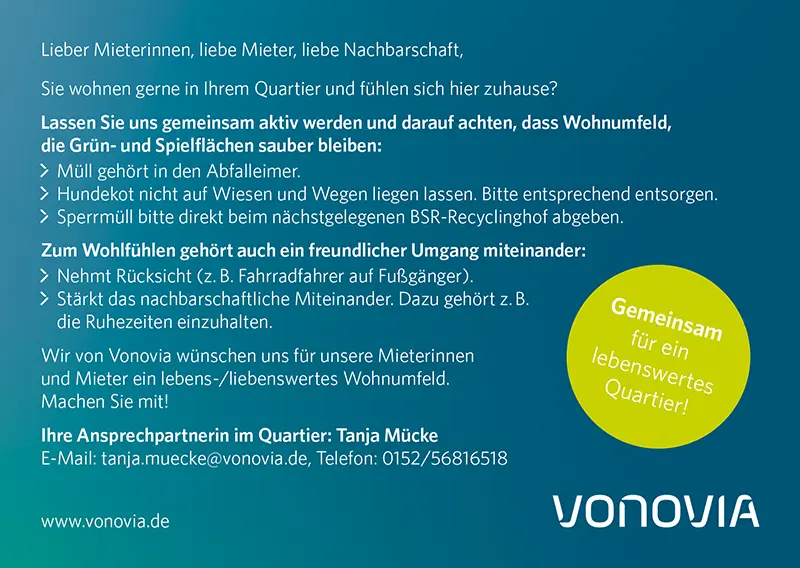 Für Deutschlands größtes Wohnungsunternehmen mit rund 482.000 Wohnungen durften wir im Bereich der Mieterkommunikation die ganze Bandbreite konzipieren, gestalten, umsetzen: von der Einladung zum Mieterfest über Beschilderungen in den Quartieren, digitale Objektordner für Neumieter oder auch das Online-Gewinnspiel zur Fußball EM 2024 mit begleitenden Maßnahmen.
